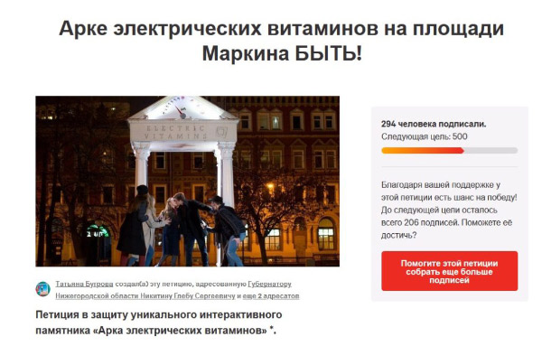 Петиция в защиту уникального интерактивного памятника «Арка электрических витаминов»