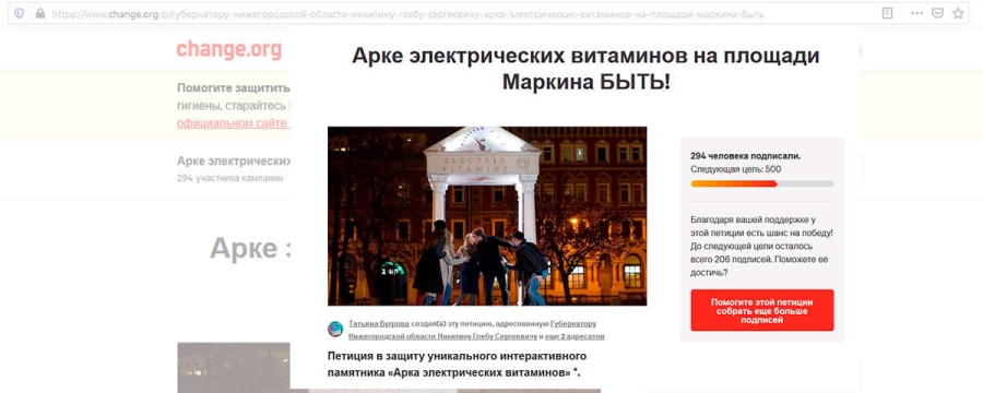 Петиция в защиту уникального интерактивного памятника «Арка электрических витаминов»